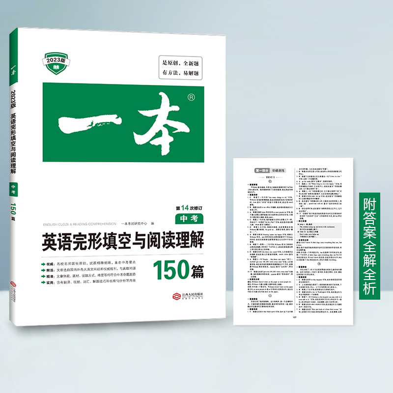 首页> 初中教辅> 中考> 英语> 2023版 一本中考英语完形填空与阅读理解150篇