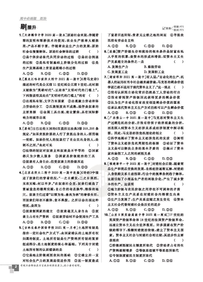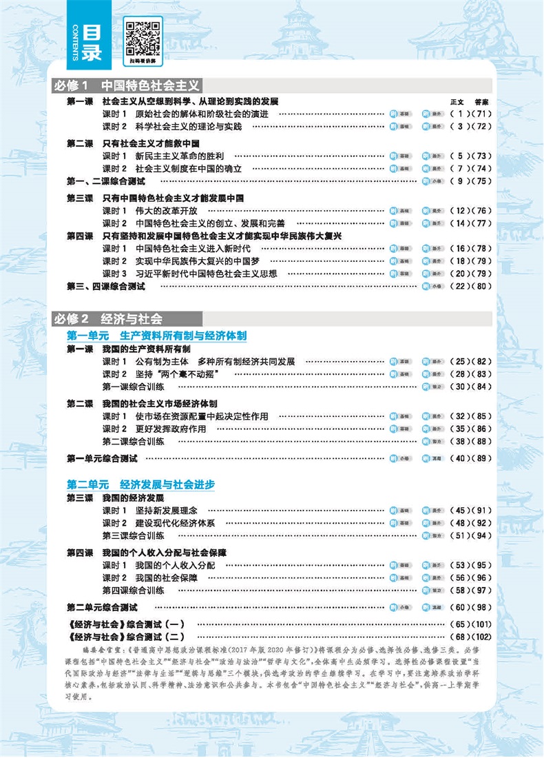 必刷题高中政治必修一+必修二 中国特色社会主义+经济与社会