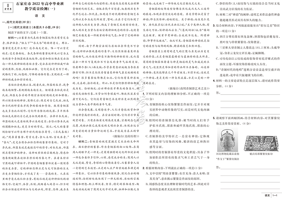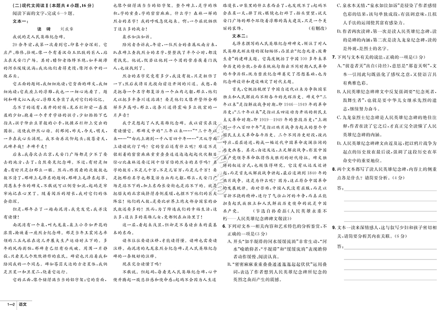 2022新高考版 金考卷特快专递第7期考前精选卷语文