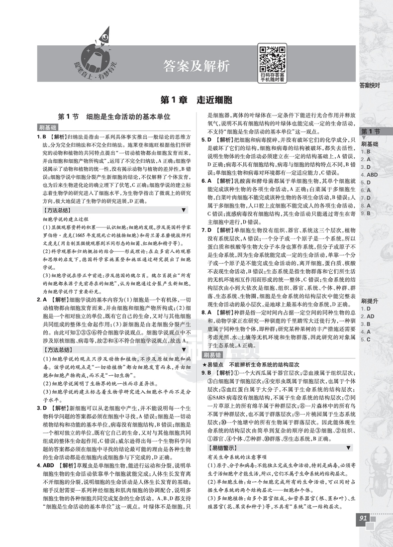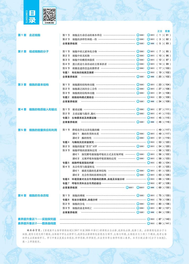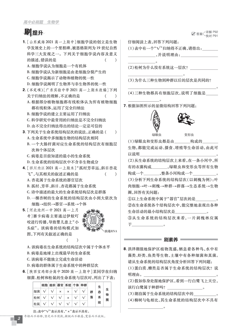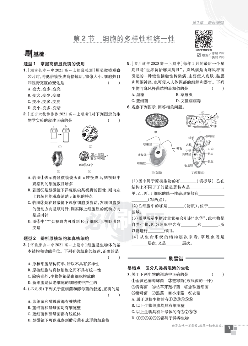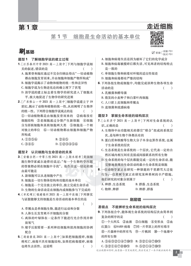 必刷题高中生物必修一 分子与细胞 适用高一