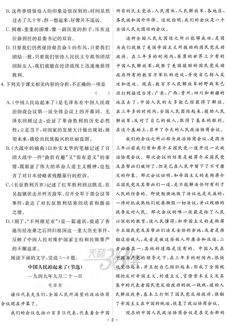 2023版 天利38套对接新高考单元专题测试卷语文选择性必修上册