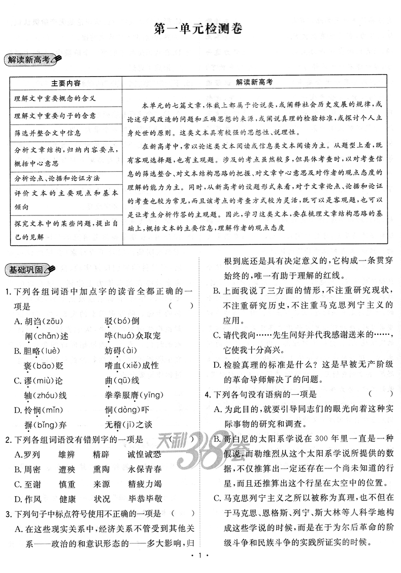 2023版 天利38套对接新高考单元专题测试卷语文选择性必修中册