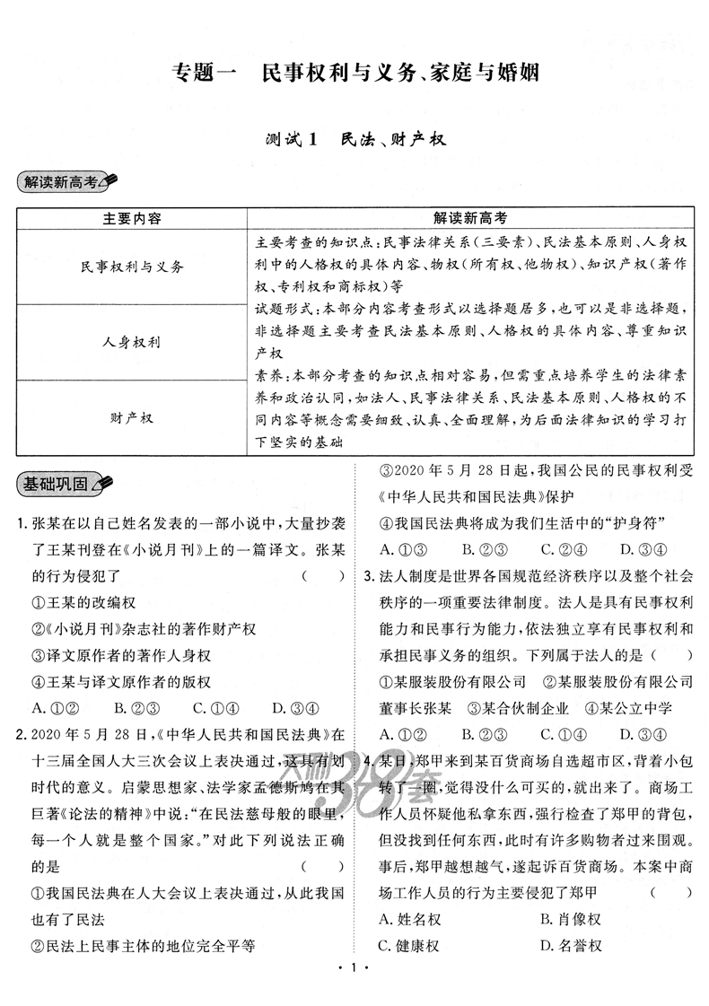 2023版 天利38套对接新高考单元专题测试卷政治选择性必修2
