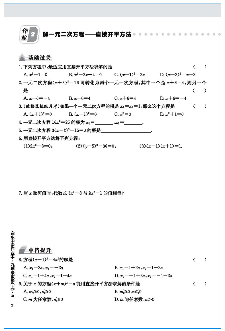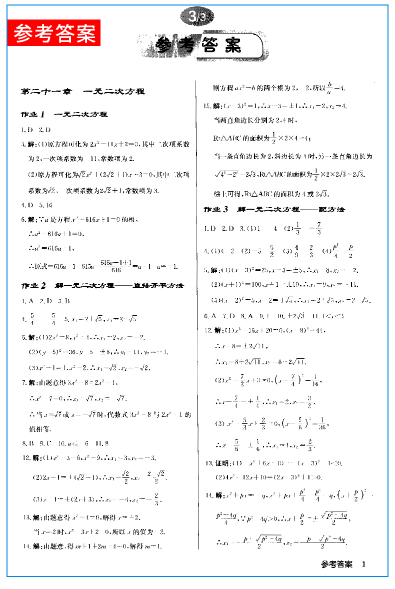 龙门书局启东中学作业本 九年级数学上册R人教版