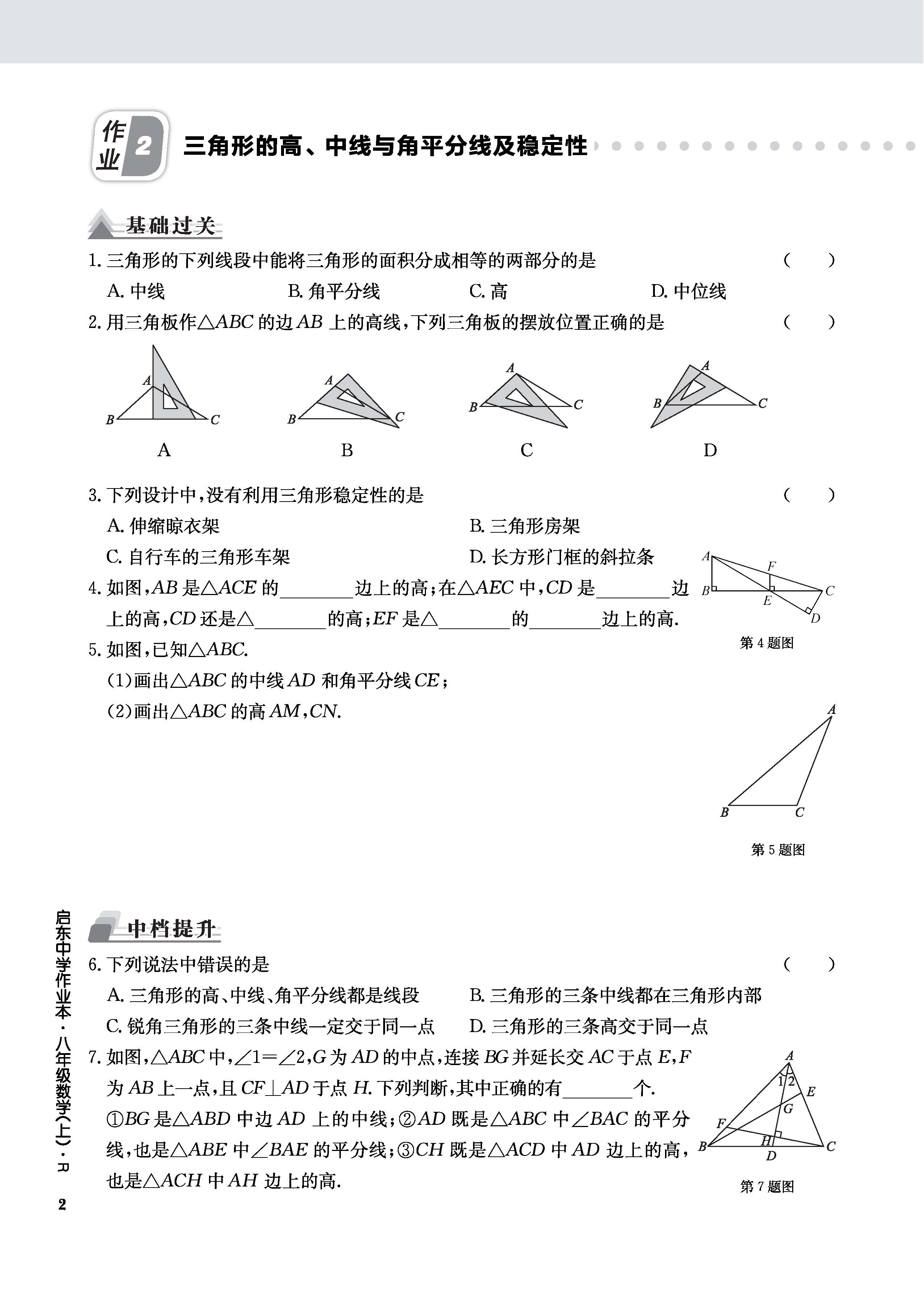 龙门书局启东中学作业本初中8年级数学上人教版R