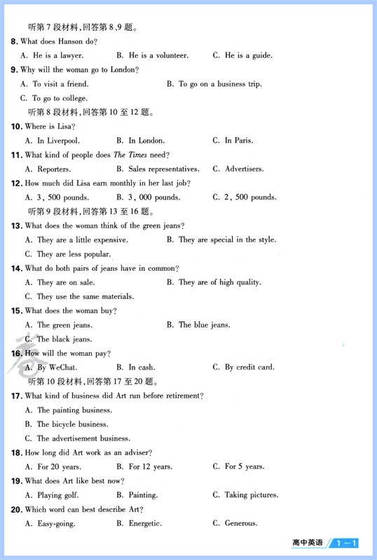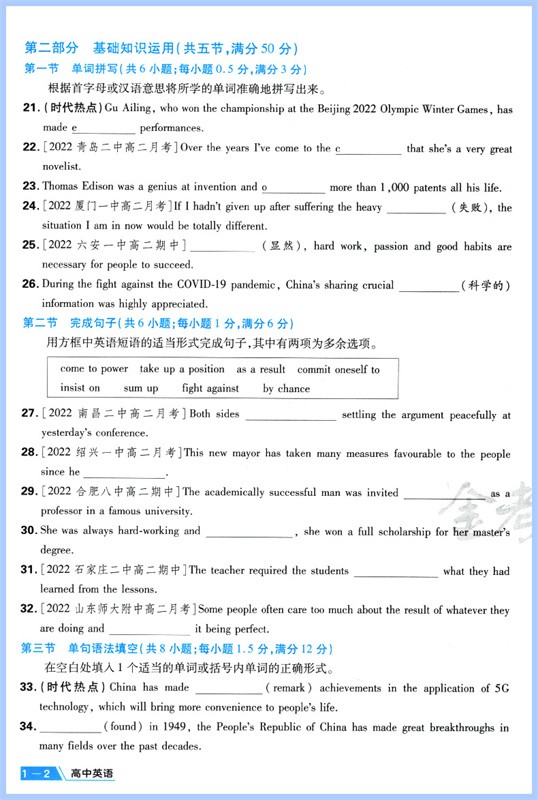 首页> 高中教辅> 高一年级> 英语> 2023版金考卷活页题选名师名题单元双测卷高中英语选择性必修第一册人教版