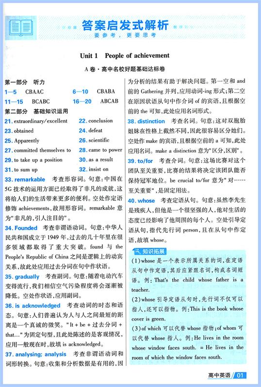 2023版金考卷活页题选名师名题单元双测卷高中英语选择性必修第一册人教版