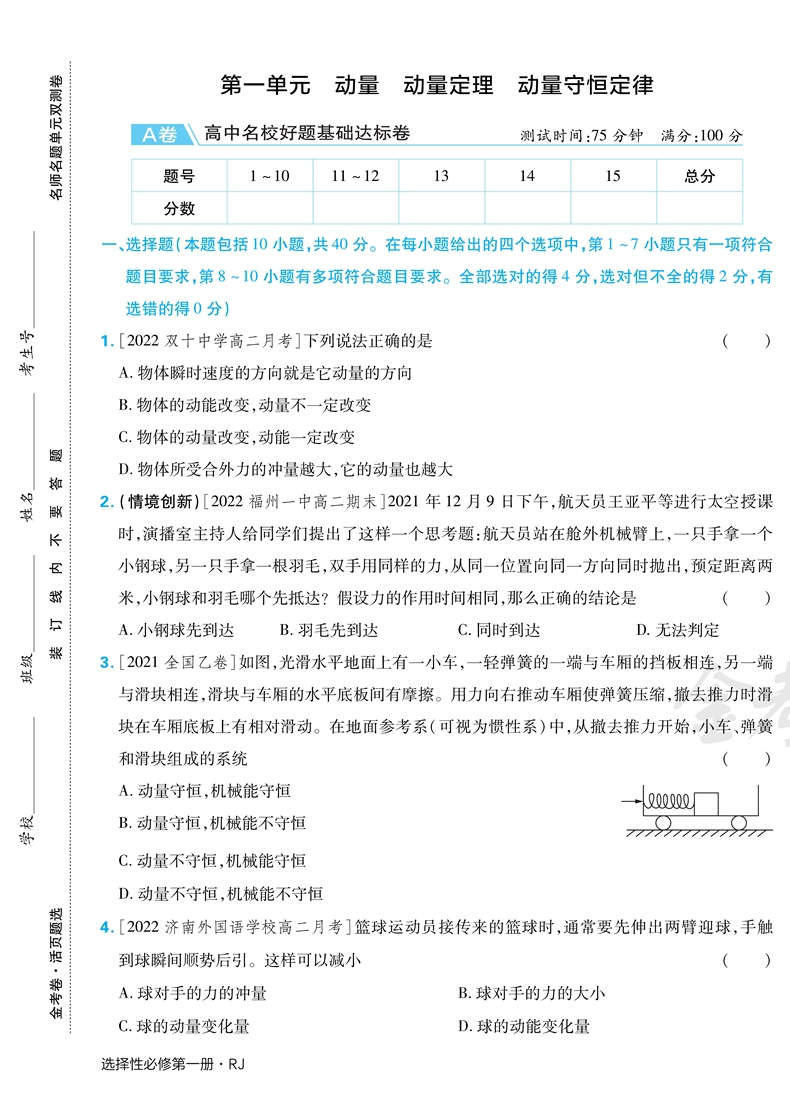 首页> 高中教辅> 高二年级> 物理> 金考卷活页题选名师名题单元双测卷高中英语选择性必修第一册人教版