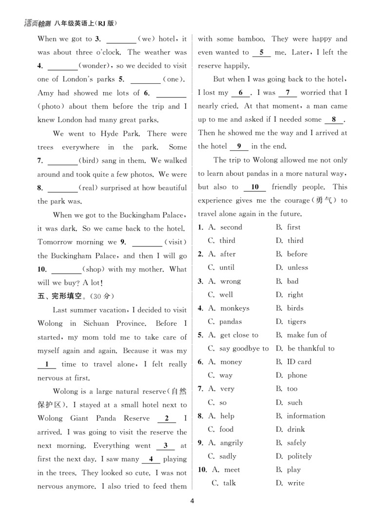 2022秋 活页检测八年级英语上