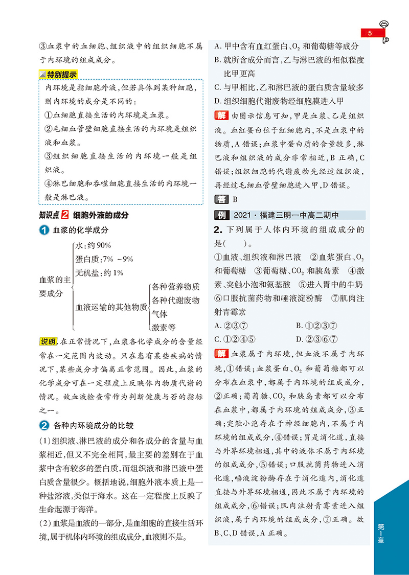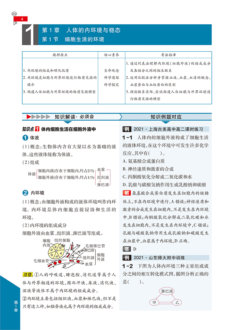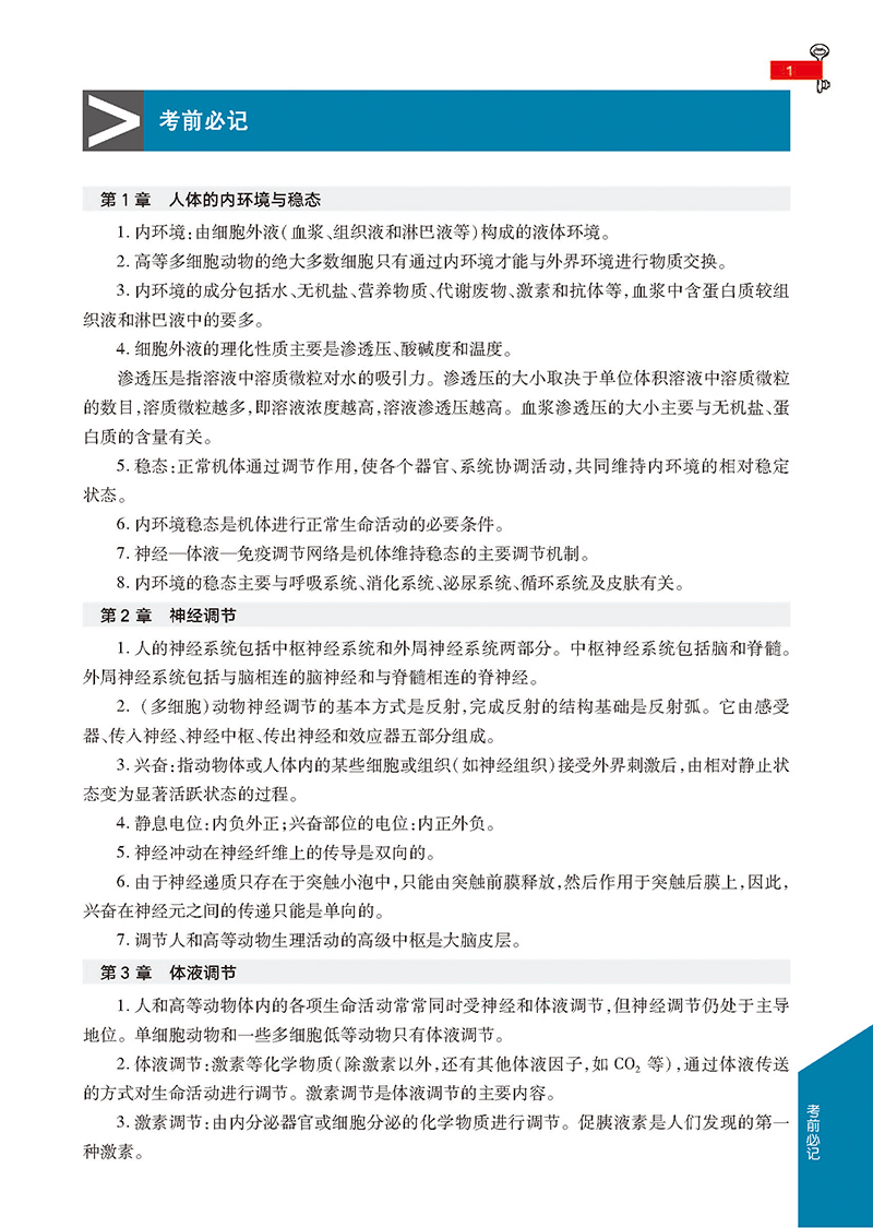 王后雄学案教材完全解读 高中生物3选择性必修1稳态与调节 人教版