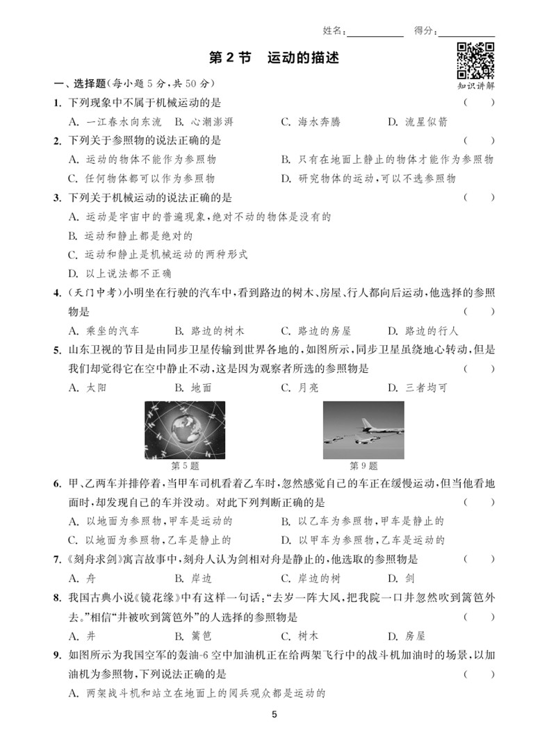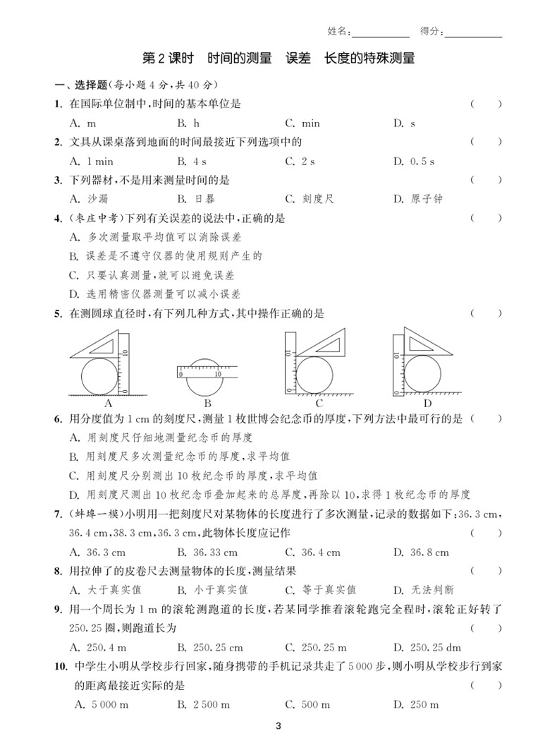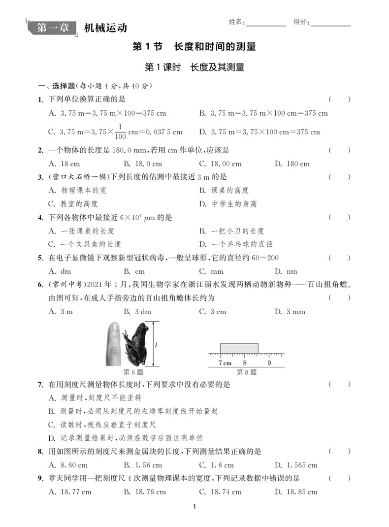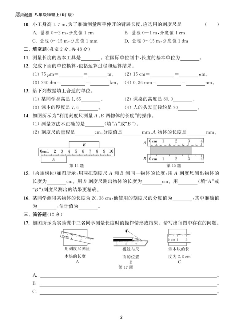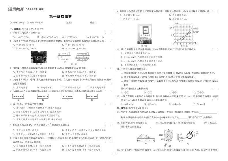 首页> 初中教辅> 八年级> 物理> 2022秋 活页检测八年级物理上