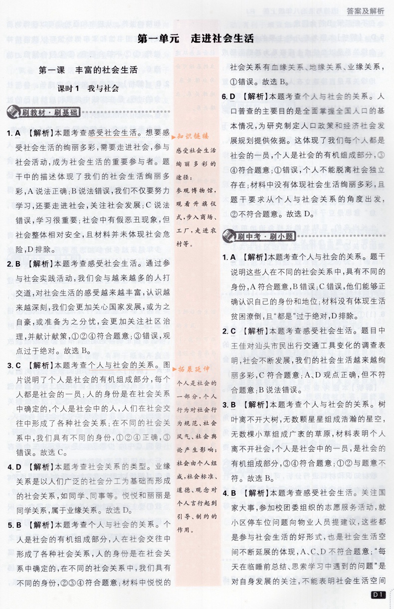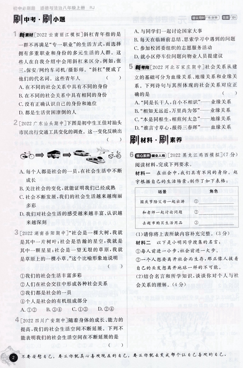 2023版初中必刷题八年级上册道德与法治人教版RJ