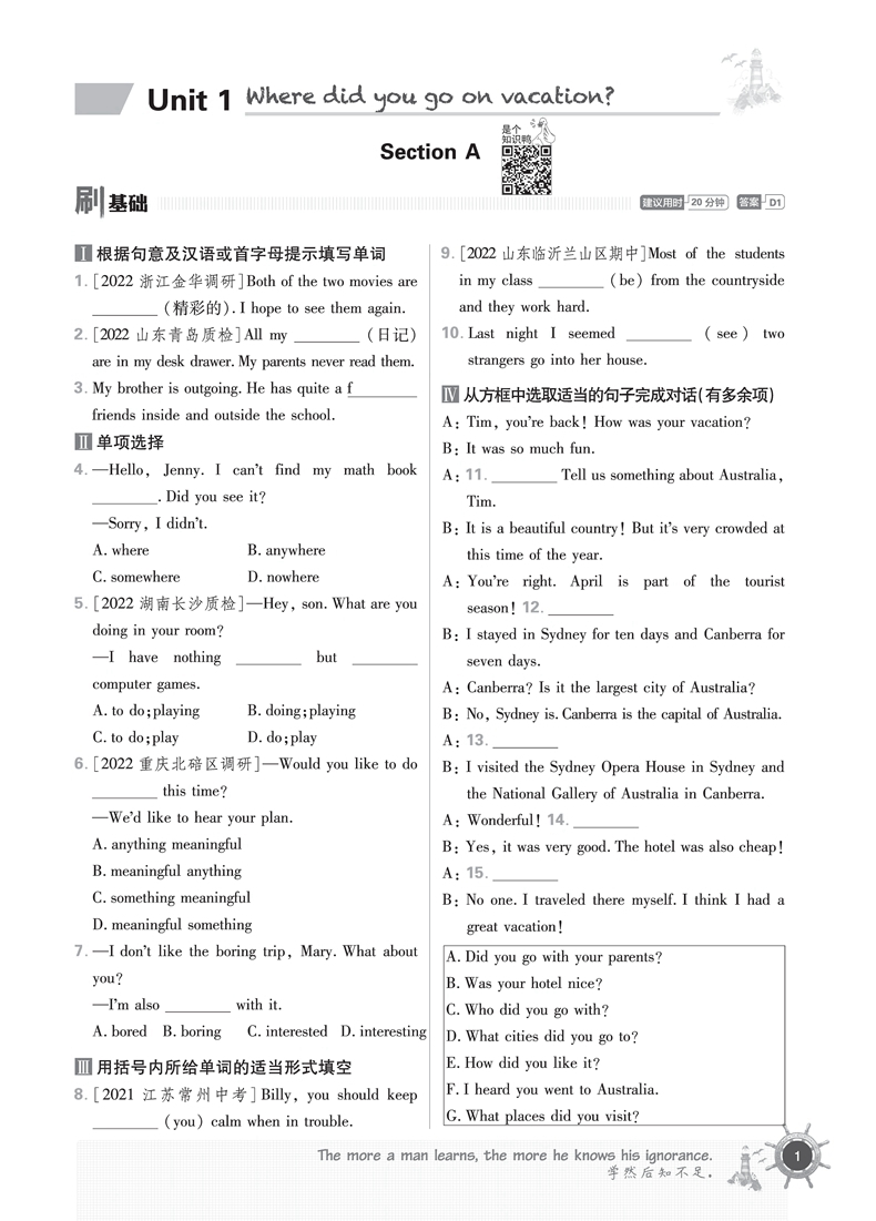 首页> 初中教辅> 八年级> 英语> 2023版初中必刷题八年级上册英语人教版RJ