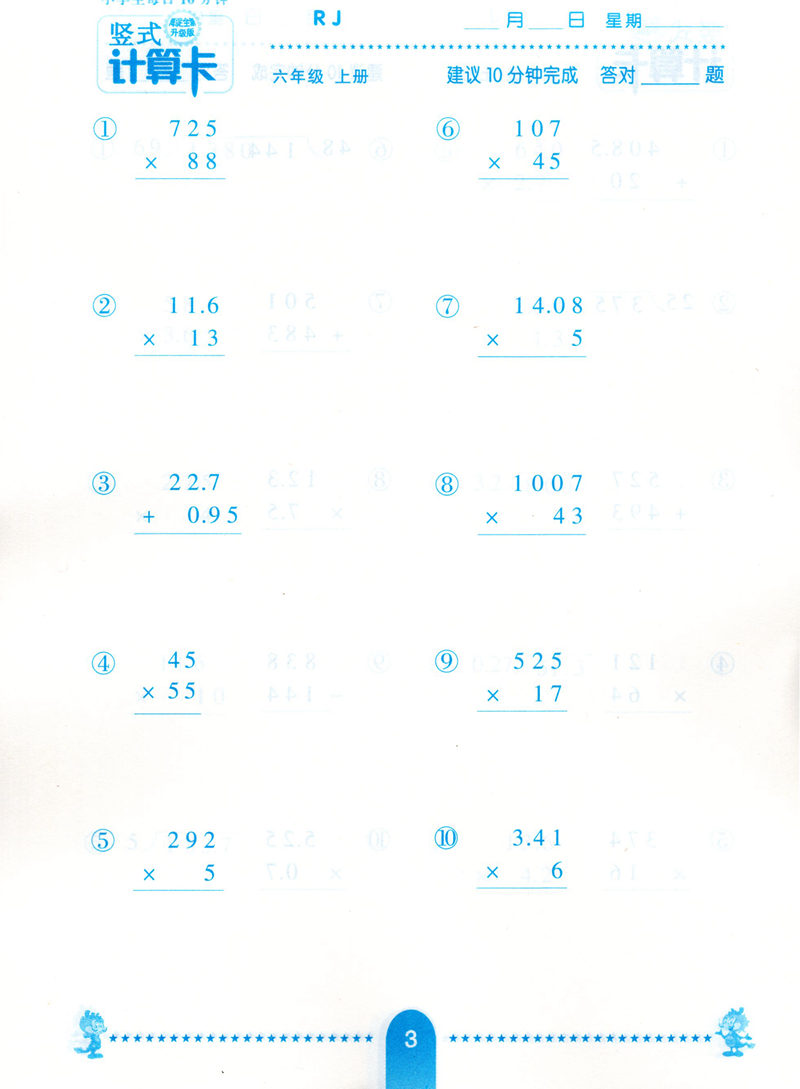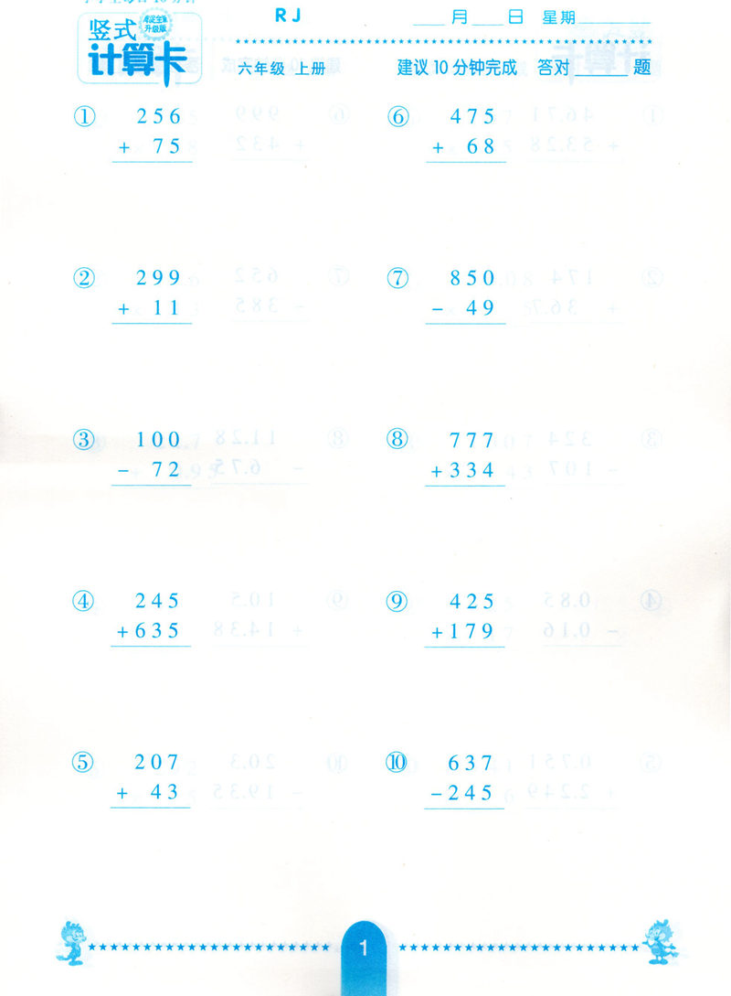 海淀竖式计算卡六年级数学