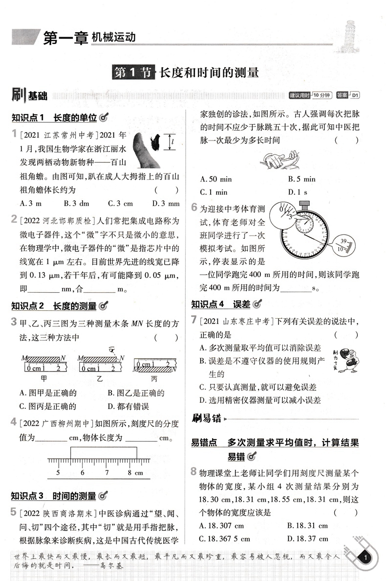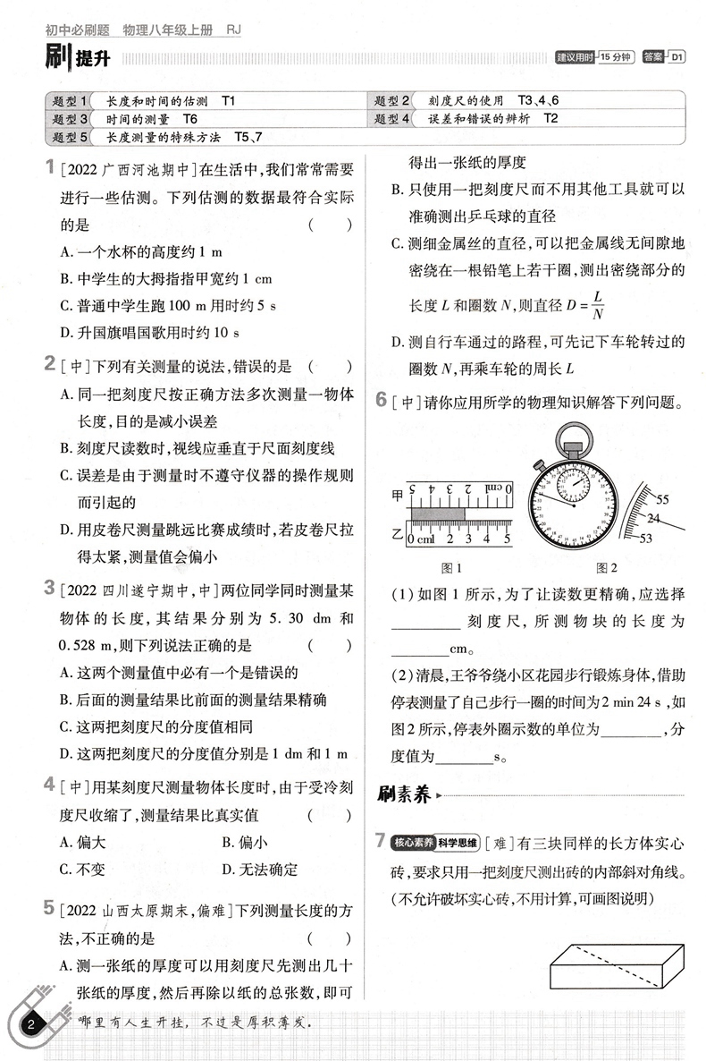 首页> 初中教辅> 八年级> 物理> 2023版初中必刷题八年级上册物理人教版RJ