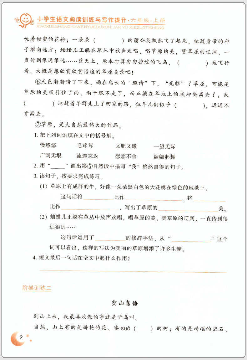 首页> 小学教辅> 六年级> 语文> 小学生语文阅读训练与写作提升6年级上册
