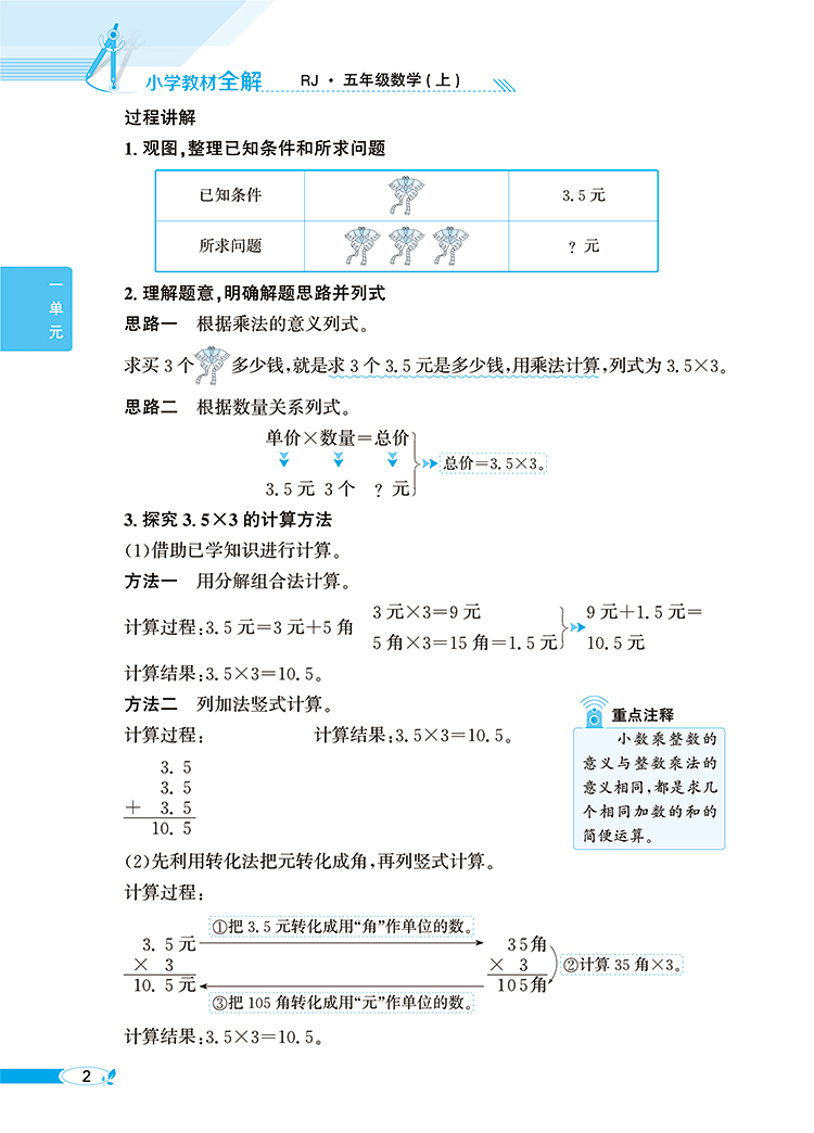 首页> 小学教辅> 五年级> 数学> 小学教材全解 五年级数学(上)RJ