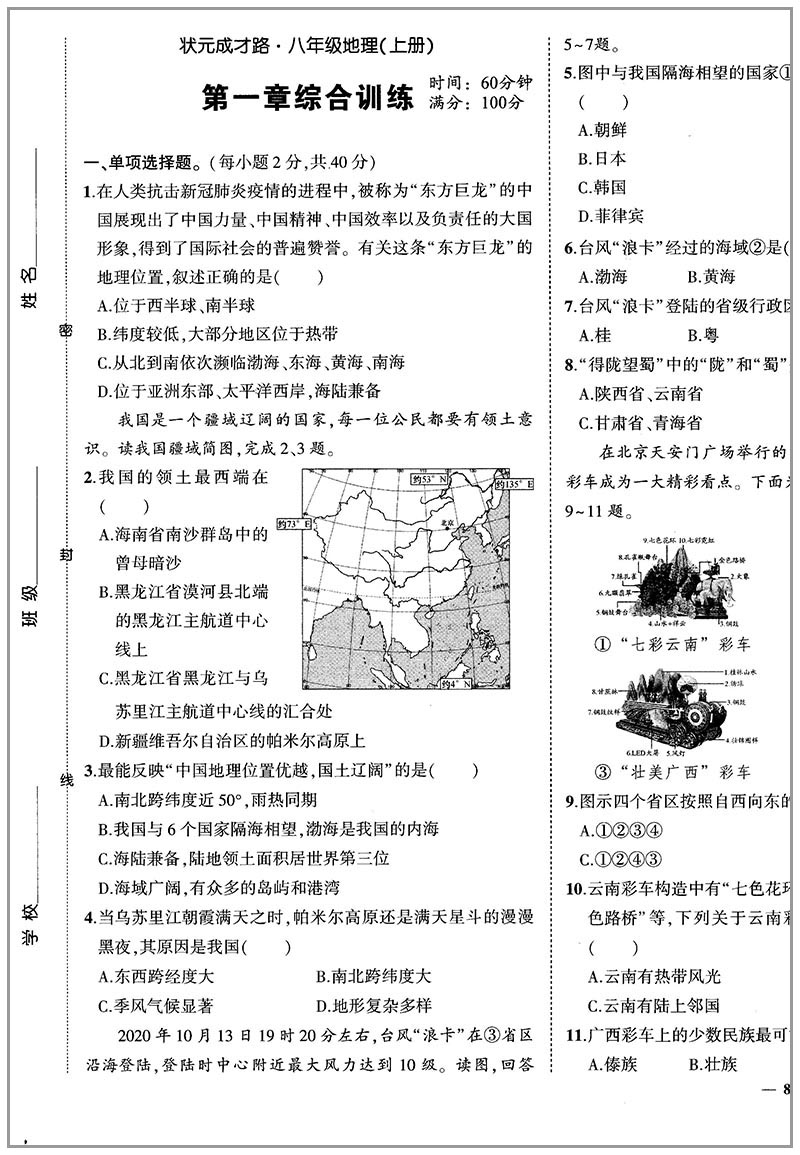 首页> 初中教辅> 八年级> 地理> 2022秋 创优作业八年级地理上册