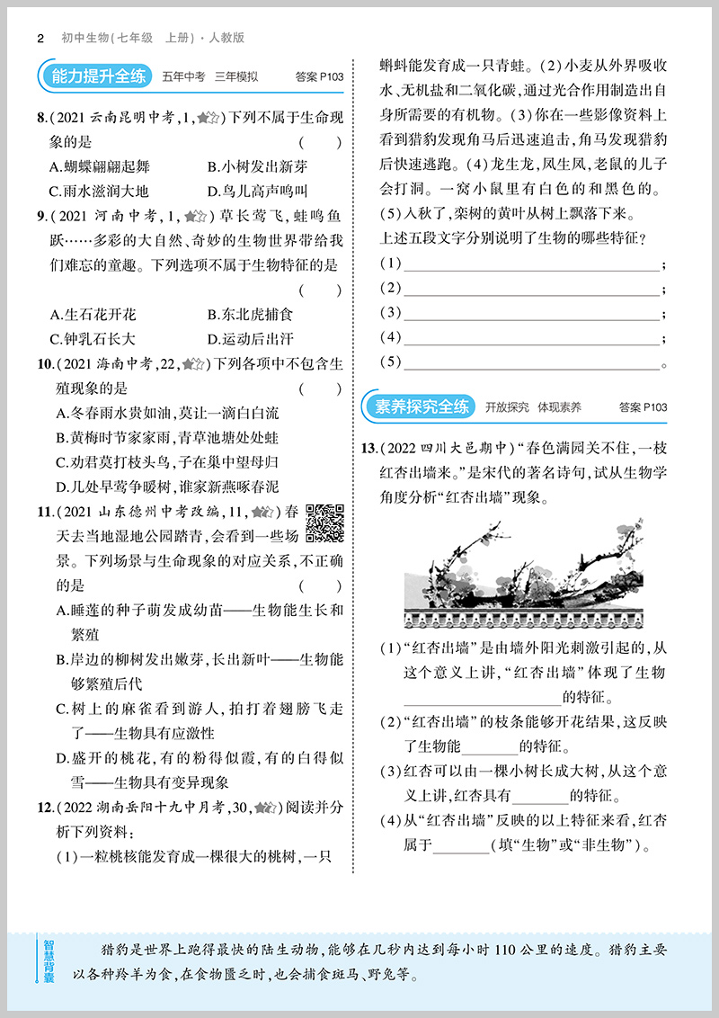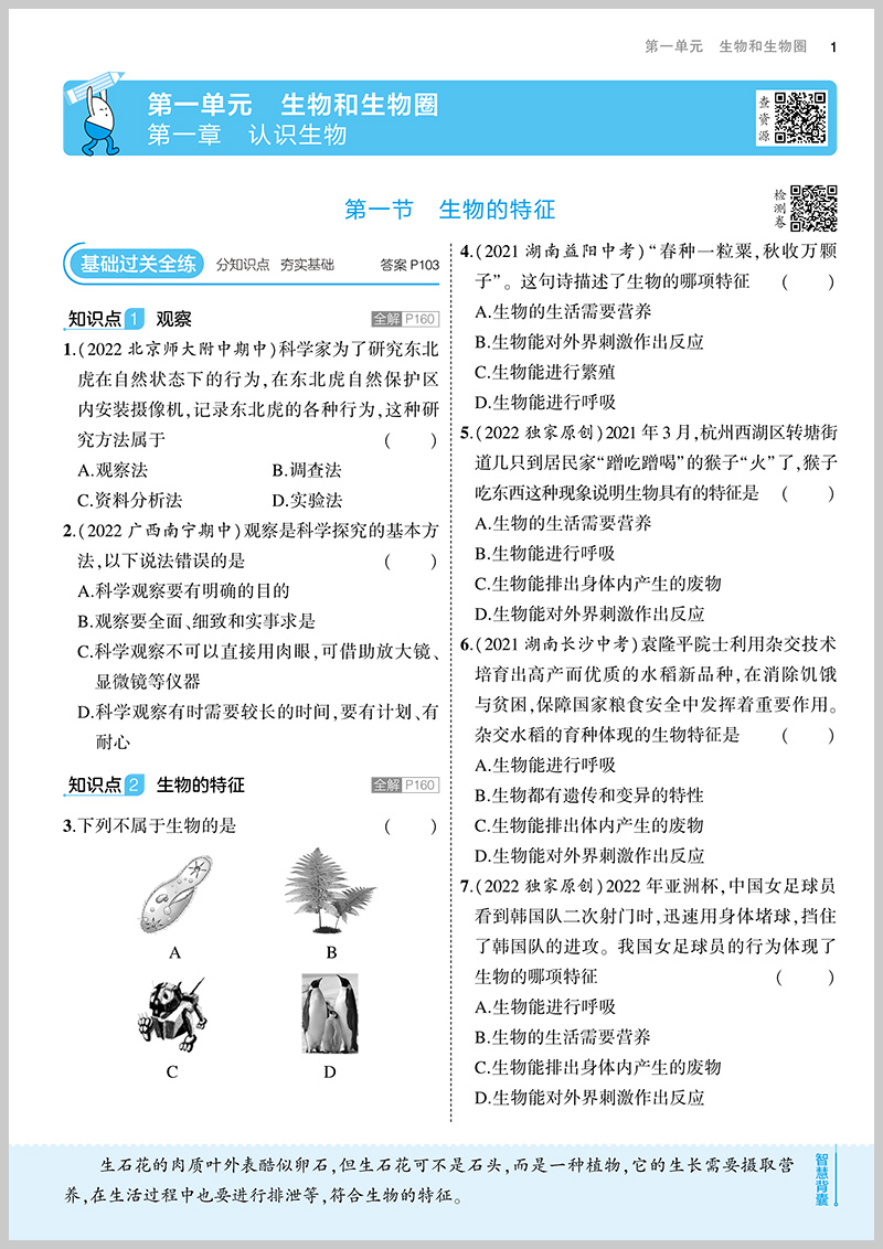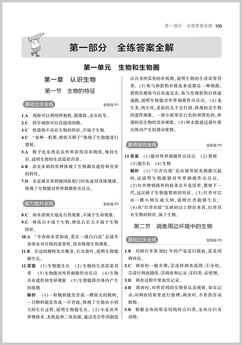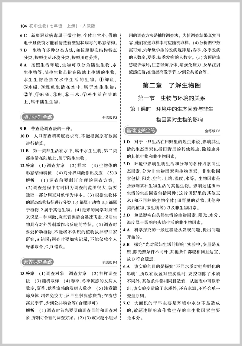 2023版5年中考3年模拟 生物 七年级上册 人教版