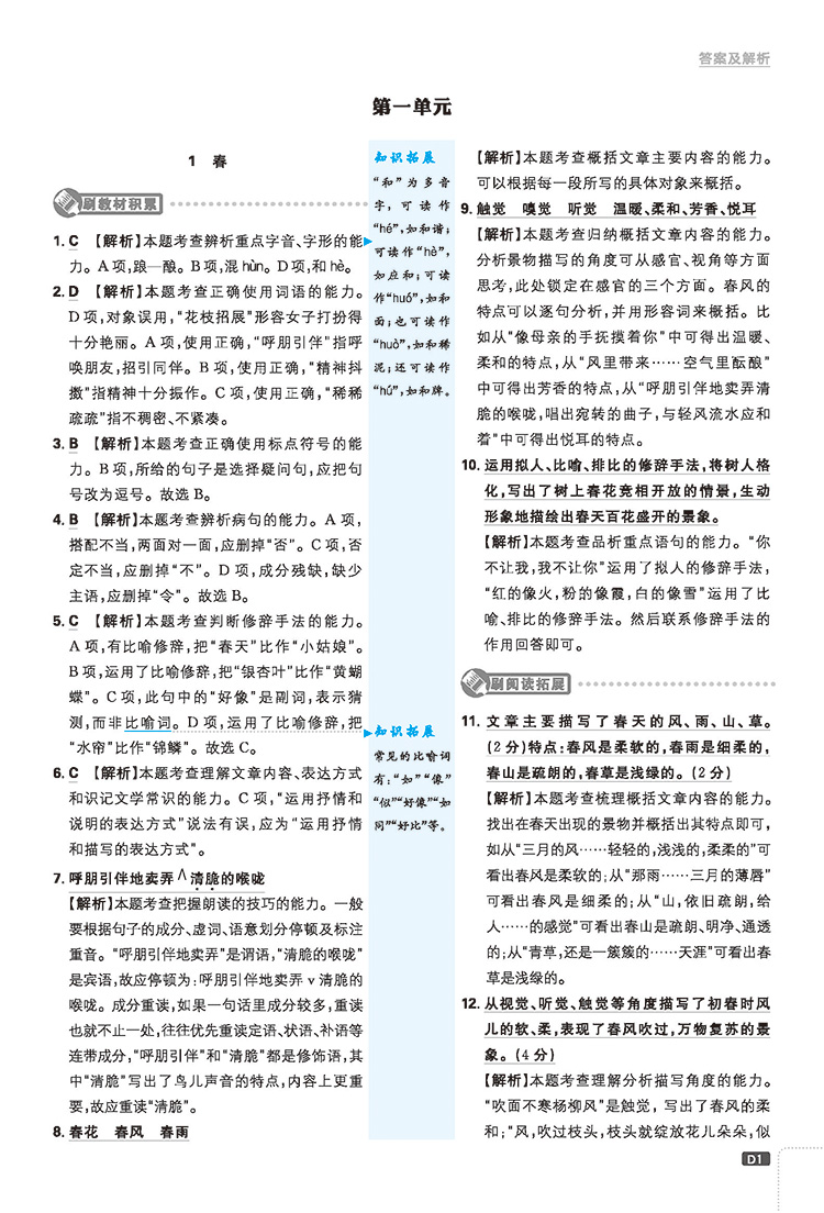 首页> 初中教辅> 七年级> 语文> 2023版 初中必刷题七年级语文上册