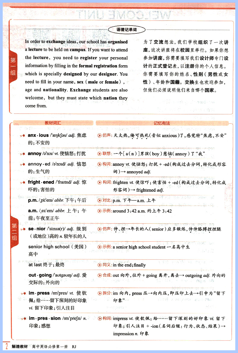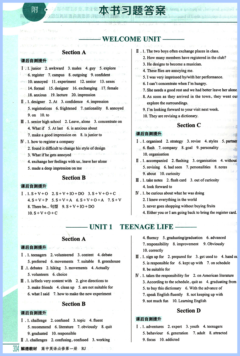 解透教材高中英语必修一第一册 人教版