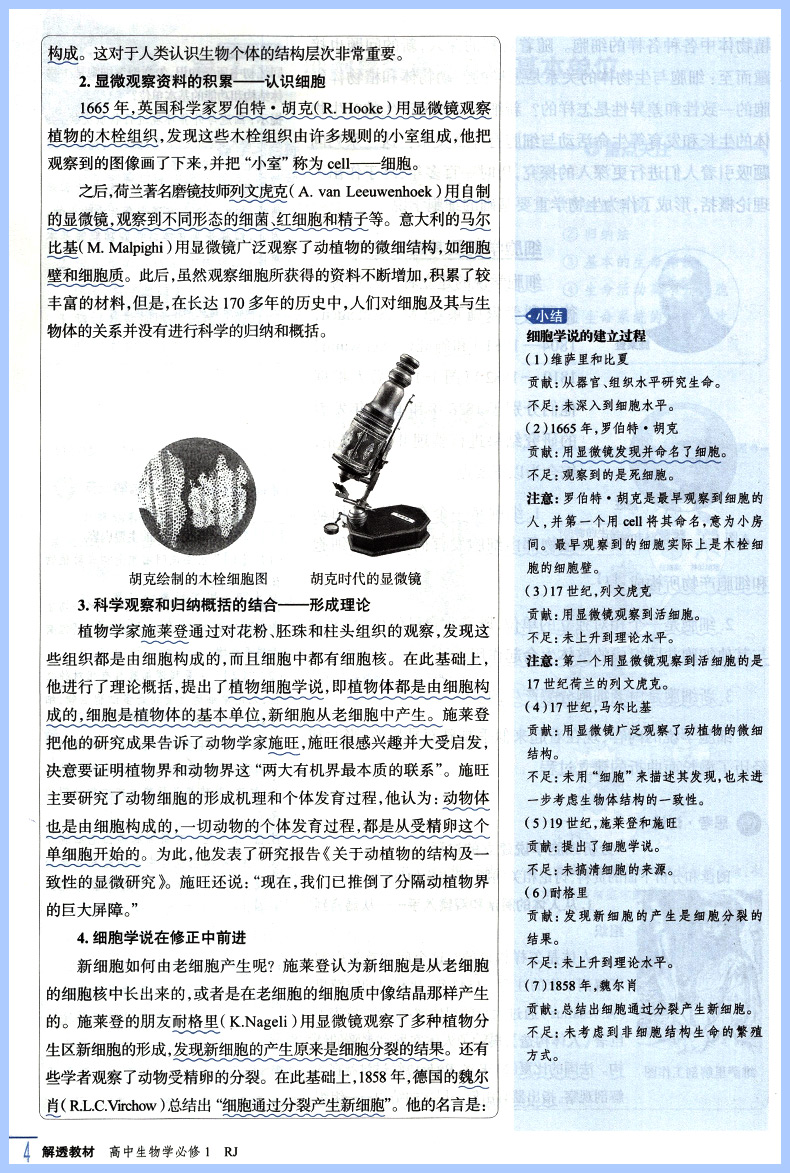 解透教材高中生物学必修一第一册分子与细胞 人教版