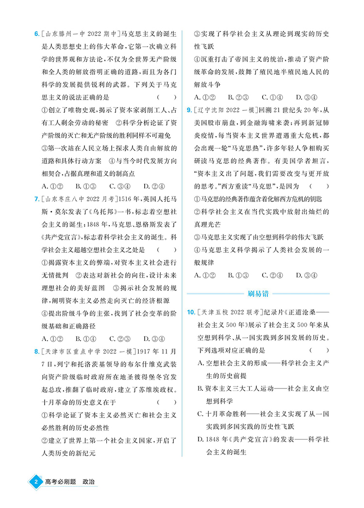 2023新教材版 高考必刷题政治合订本