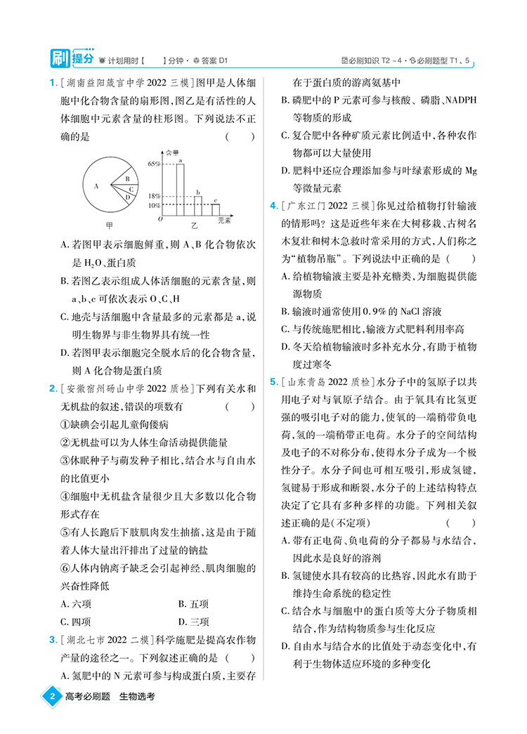 2023新教材版 高考必刷题生物合订本