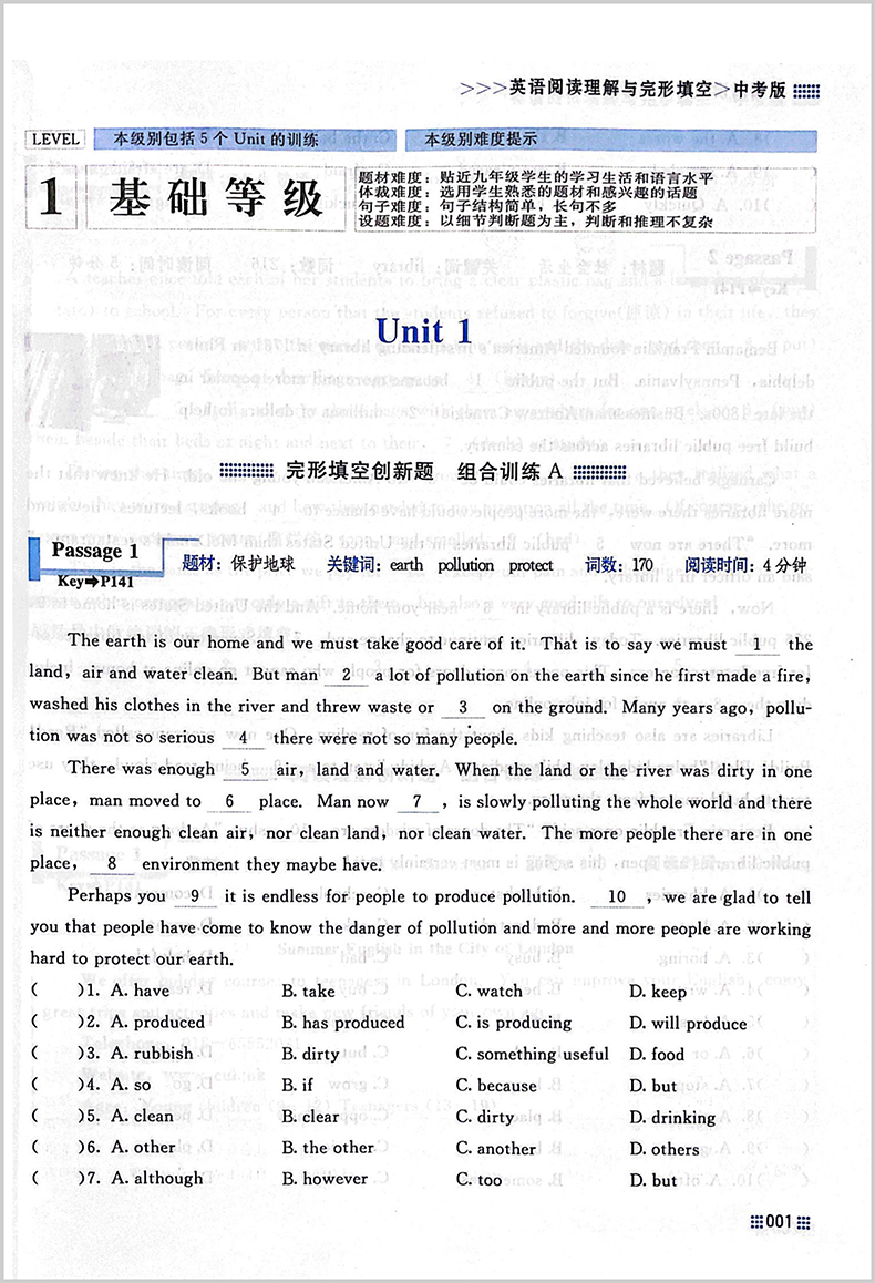 新金牌英语专项突破训练 中考版 阅读理解与完形填空