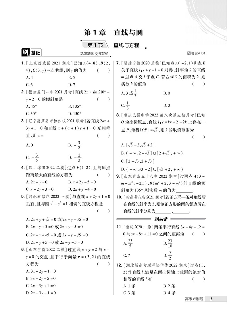 首页> 高中教辅> 高三年级> 数学> 2023版 高考必刷题 数学5解析几何