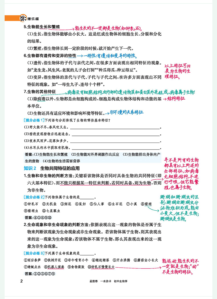 2023版 星推荐一本涂书初中生物 初中阶段均适用