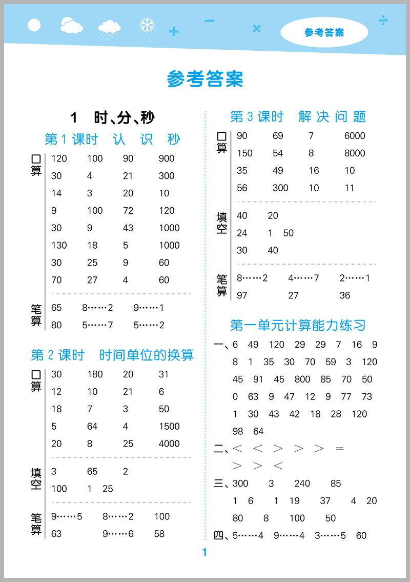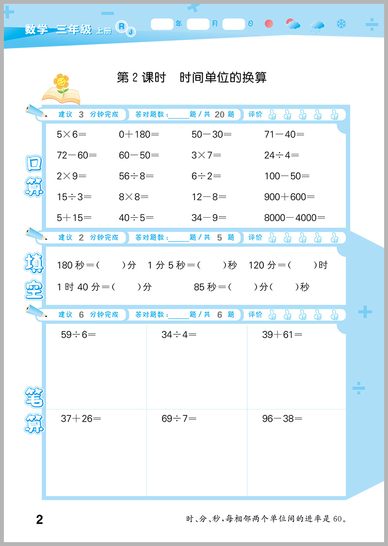 小学口算大通关 数学 三年级上册 RJ 人教版 2022秋季