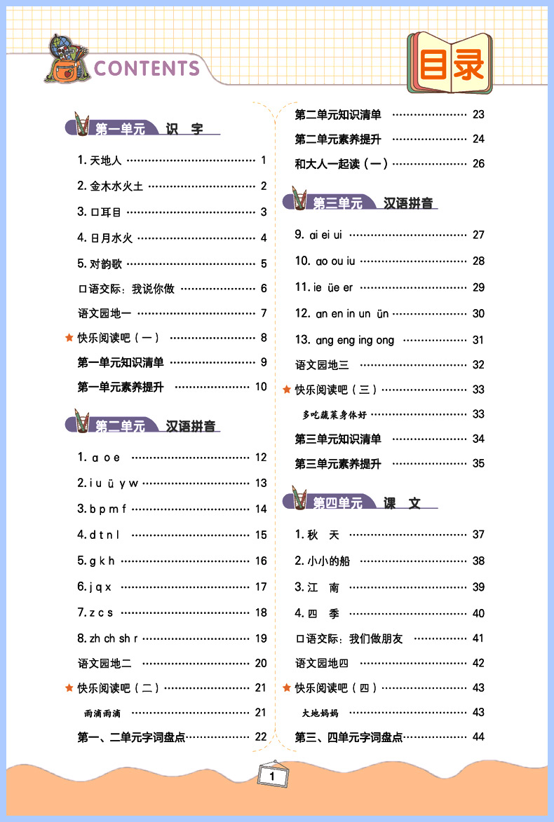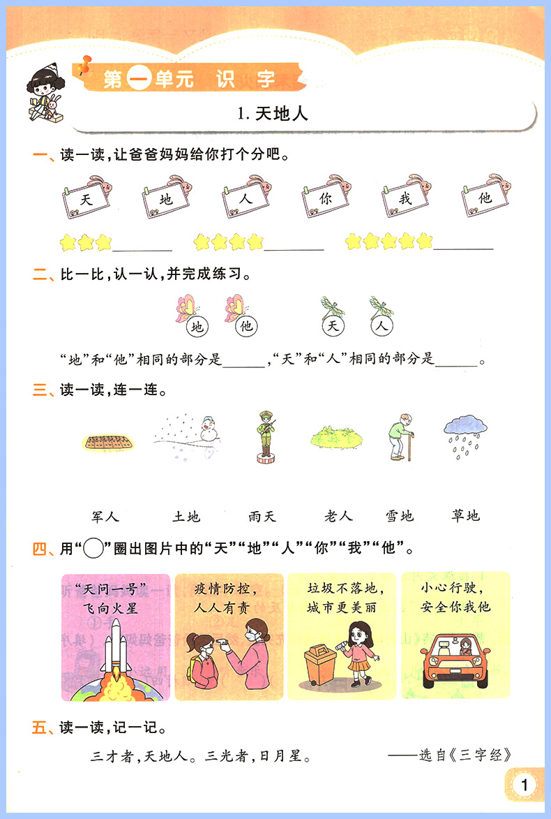 2023版 黄冈同步训练一日一练一年级语文上