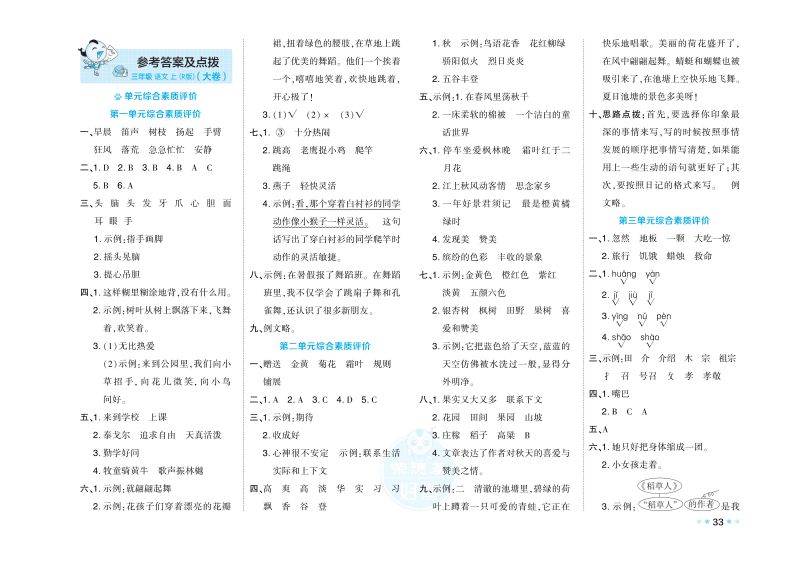 首页> 小学教辅> 三年级> 语文> 2022秋 荣德基 好卷三年级语文上册人教版