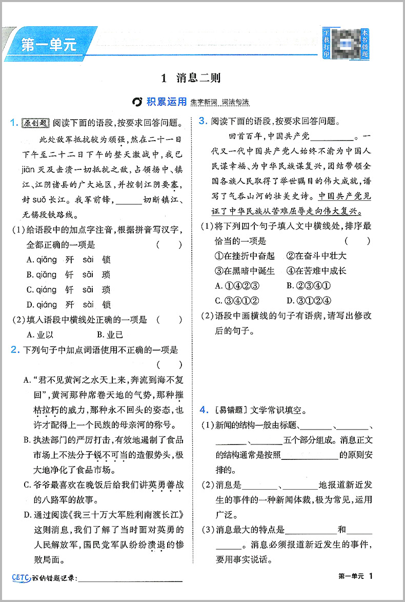 首页> 初中教辅> 八年级> 语文> 点拨训练 八年级上册 语文 人教版