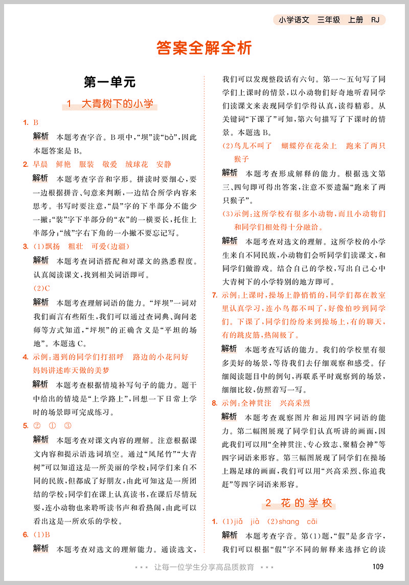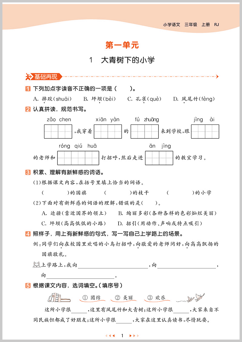 53天天练 小学语文 三年级上册 RJ 人教版 2022秋季