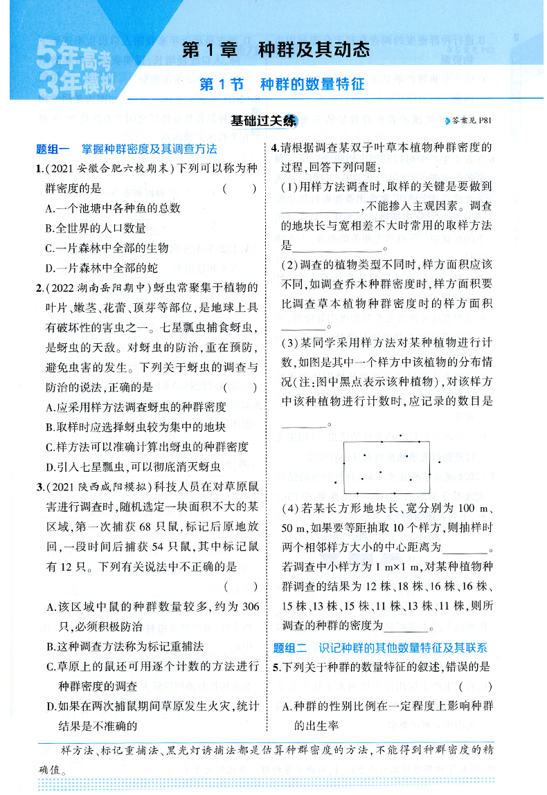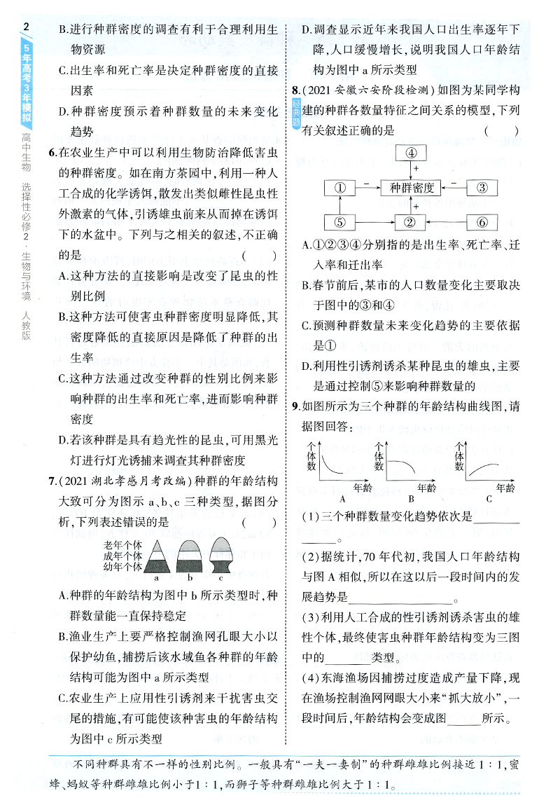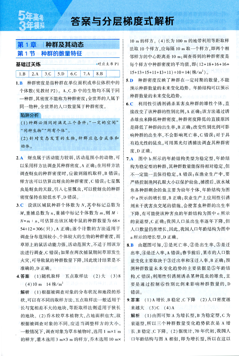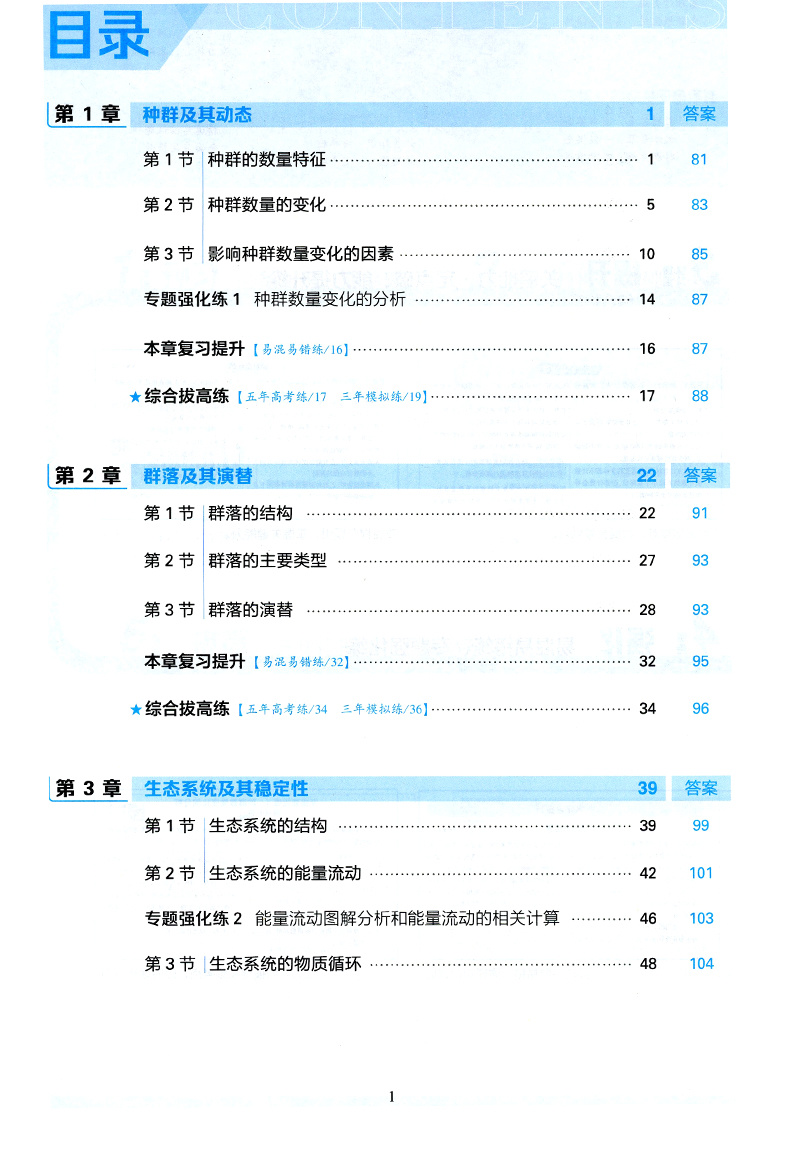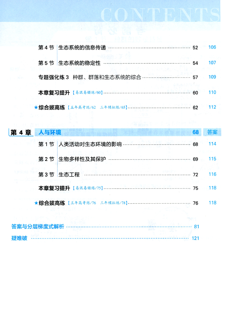 2023版曲一线 5年高考3年模拟 高中生物 选择性必修2 生物与环境人教版