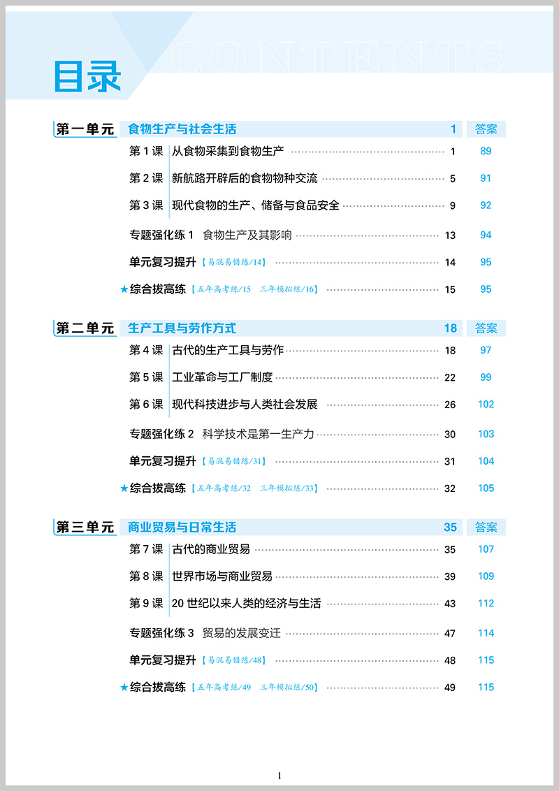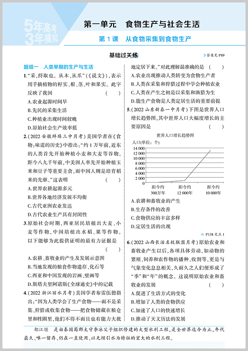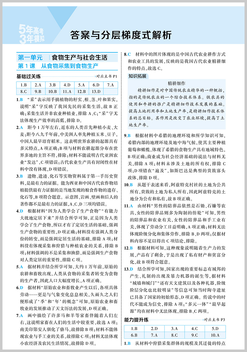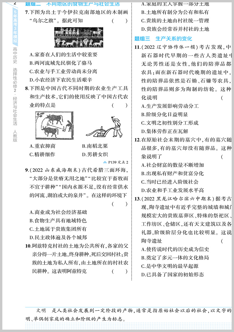 2023版曲一线 5年高考3年模拟 高中历史 选择性必修2 经济与社会生活 人教版