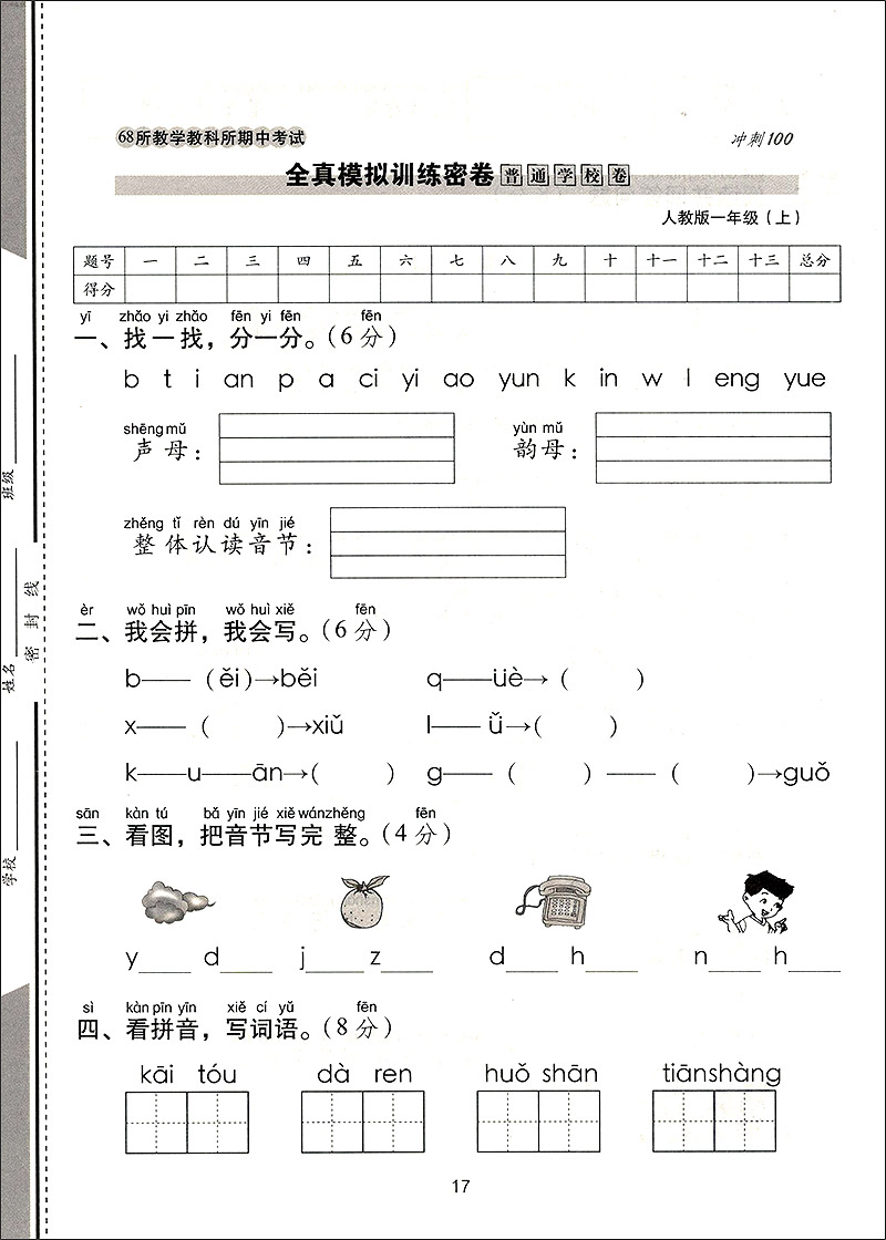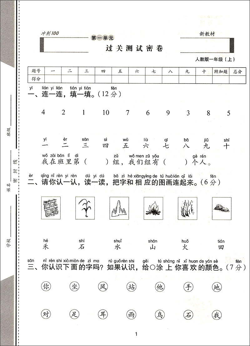 2022秋期末冲刺100分语文一年级 上册(人教版)