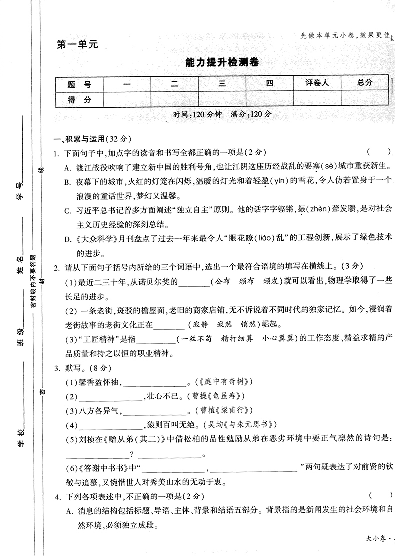 首页> 初中教辅> 八年级> 语文> 2023版万唯中考大小卷八年级上册语文