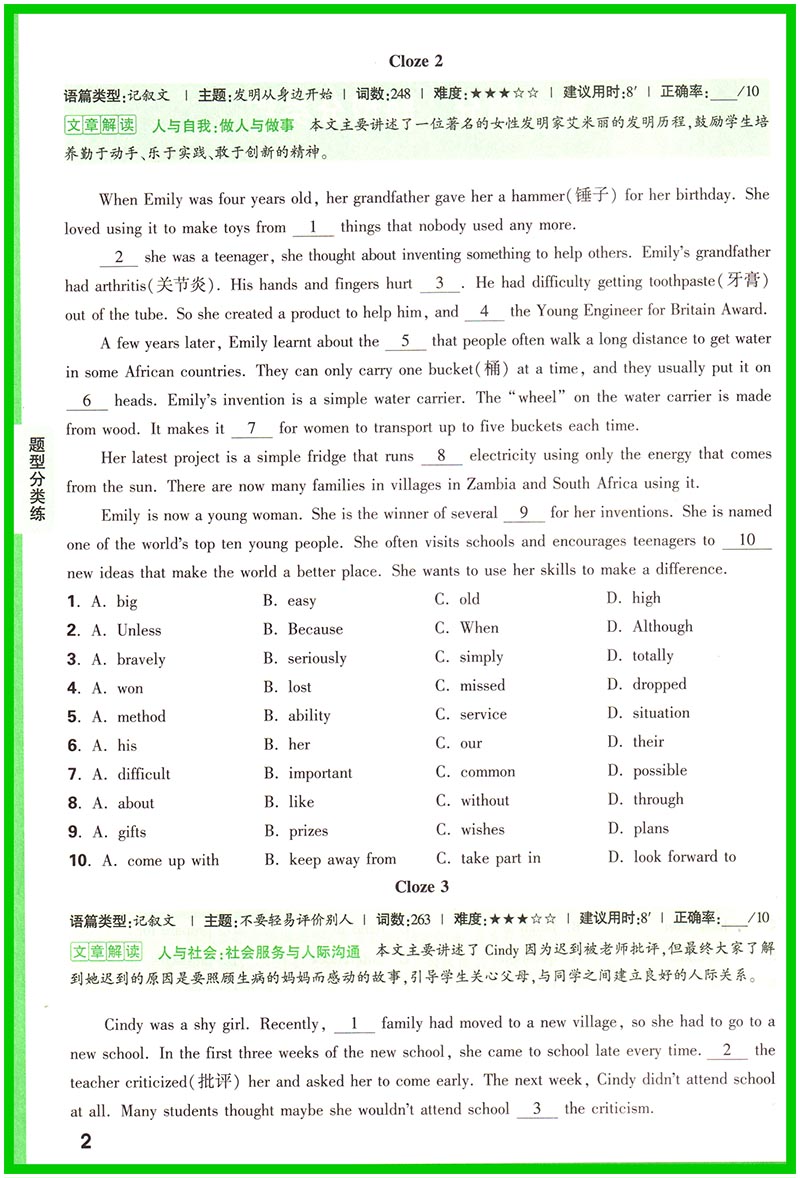 2023版 万唯中考英语完形填空阅读理解专项训练
