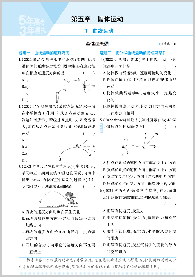 2023版5年高考3年模拟高中物理必修第二册人教版