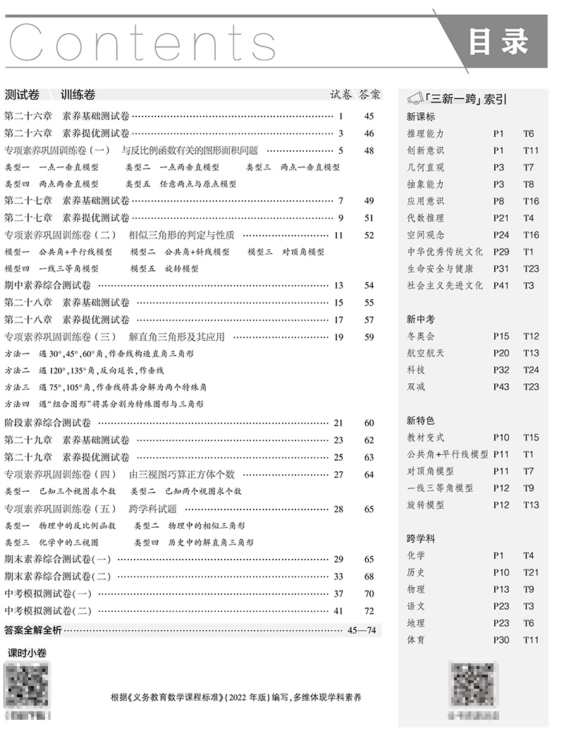 2023版五年中考三年模拟 初中试卷 数学 九年级下册 人教版