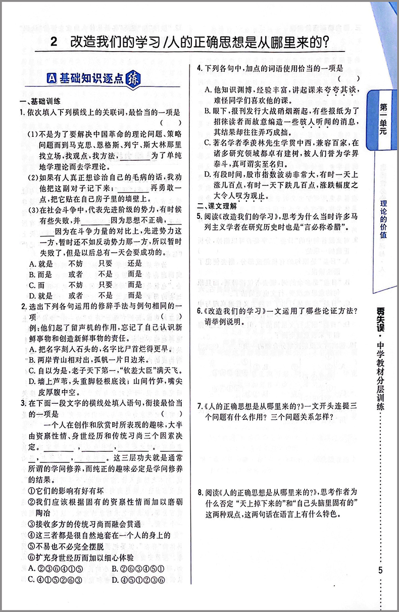 零失误 分层训练 高中语文 选择性必修中册 人教版