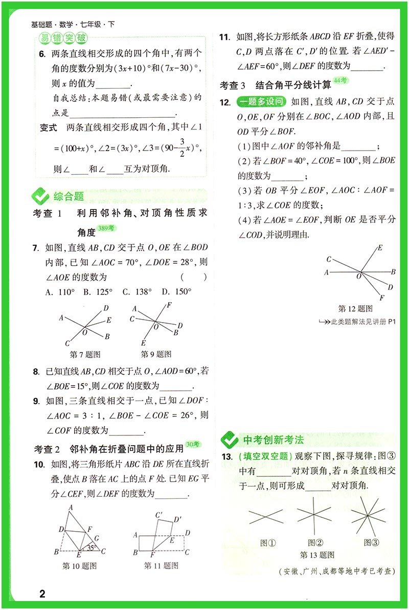 首页> 初中教辅> 七年级> 数学> 万唯中考 基础题 七年级下册数学 人教版