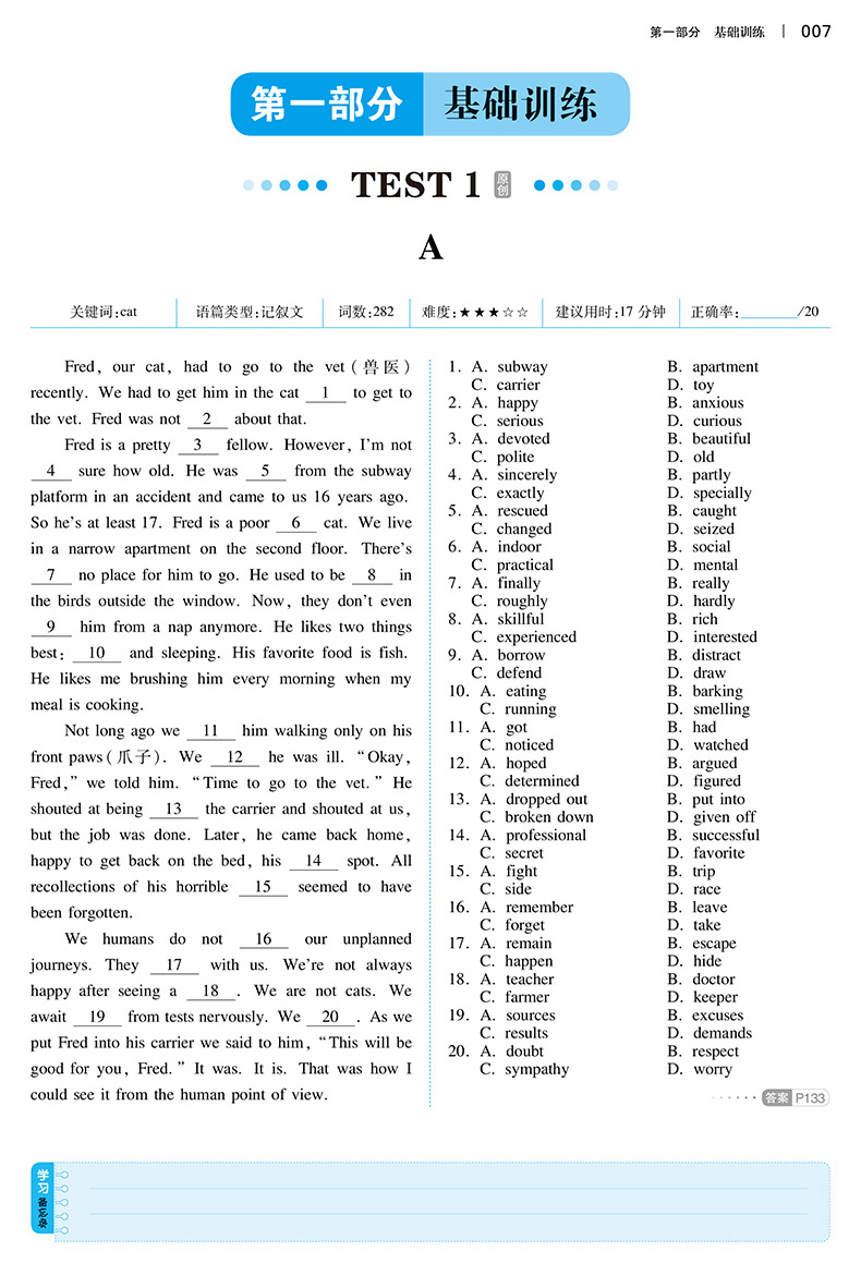 首页> 高中教辅> 高二年级> 英语> 一本英语完形填空与语法填空高二