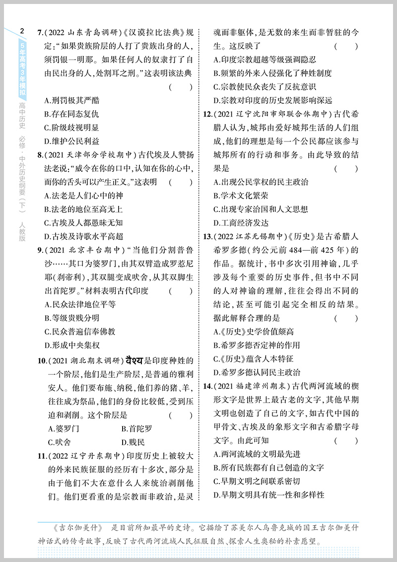 2023版 5年高考3年模拟高中历史必修 中外历史纲要下册 人教版