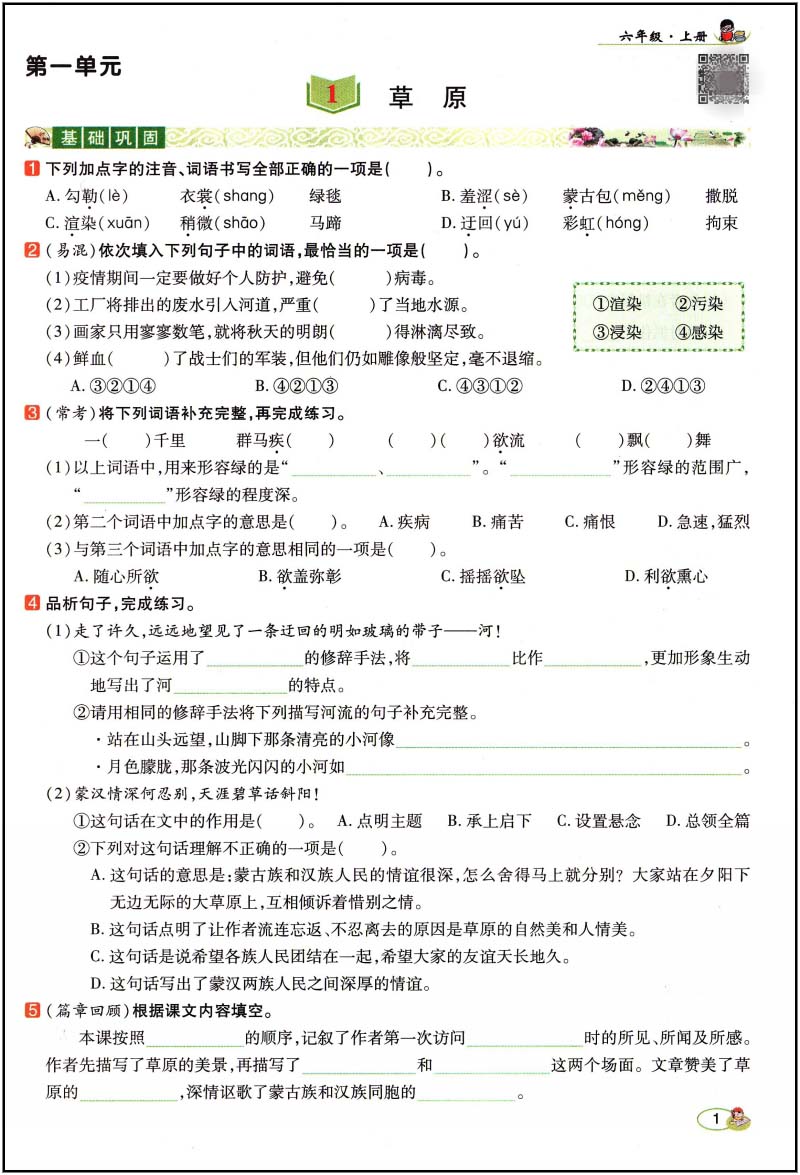 尚学生香六年级语文上册