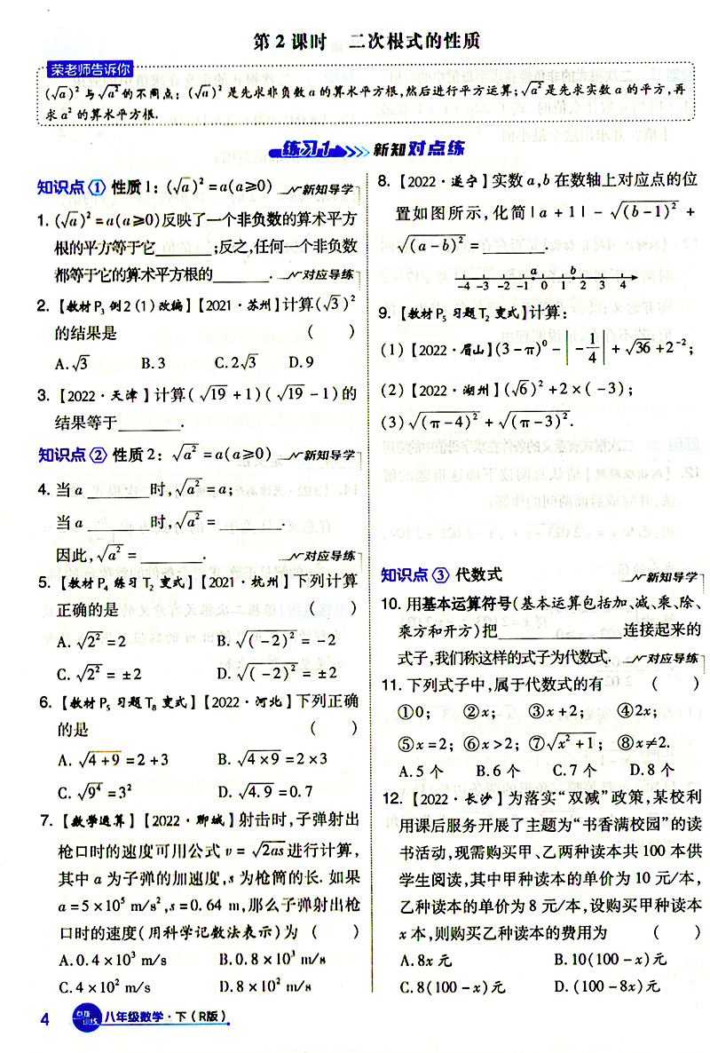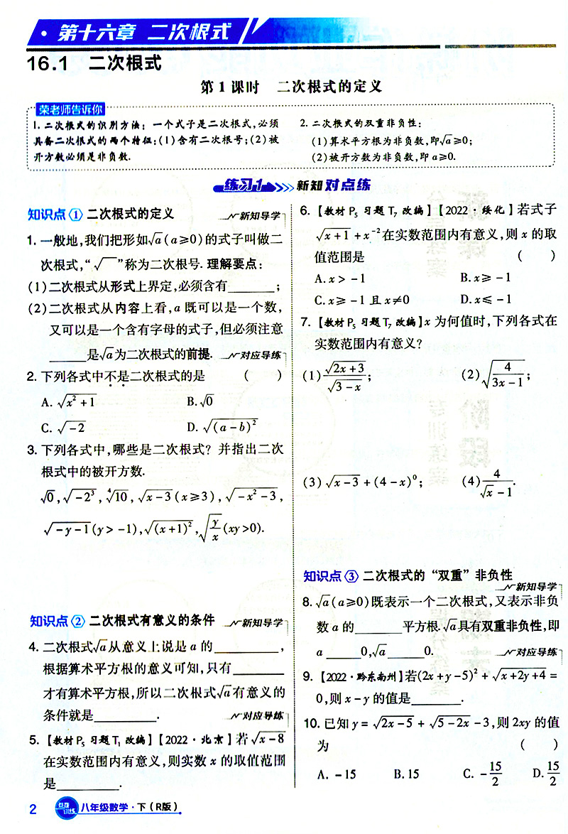 2023春 荣德基点拨训练 八年级数学下册 人教RJ版