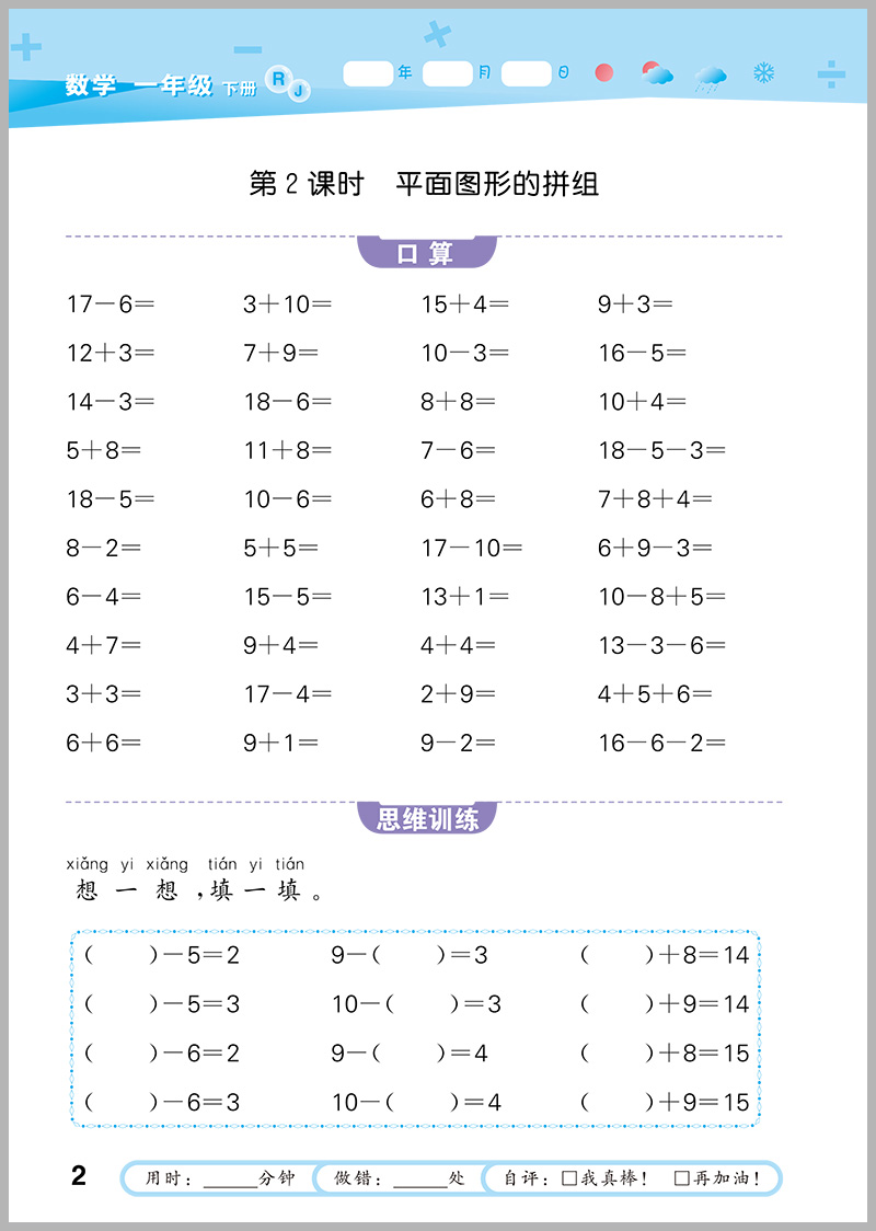 2023春季 小学口算大通关 数学 一年级下册 RJ 人教版